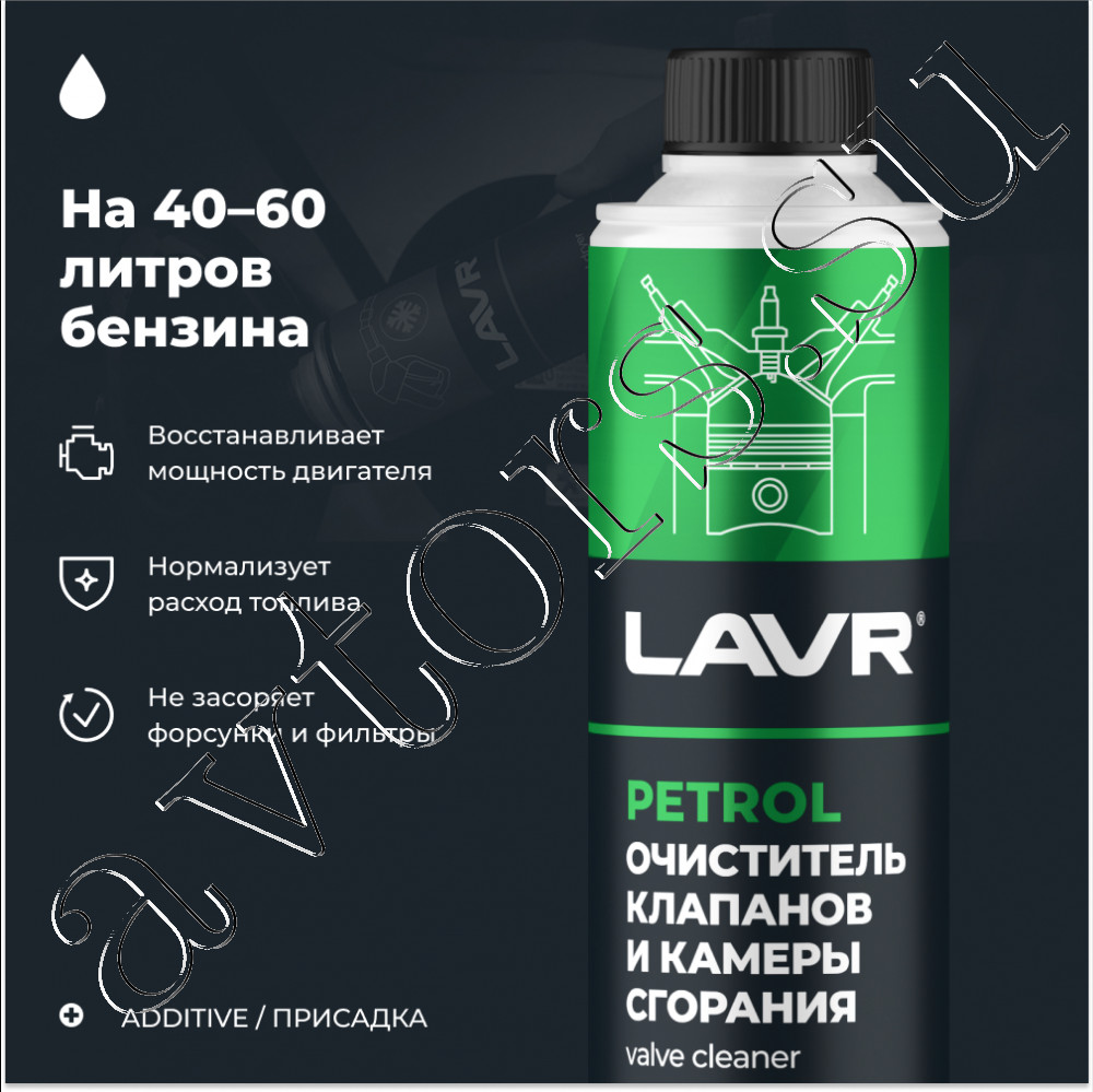 Удаляет нагар с впускных клапанов, камеры сгорания и днищ поршней Устраняет калильное зажигание Восстанавливает мощностные характеристики двигателя Улучшает приемистость двигателя и нормализует расход топлива Снижает токсичность выхлопных газов Безопасна для катализаторов и двигателей с турбонаддувом Запатентованный очищающий комплекс LAVR ISP/DET™ Одна упаковка рассчитана на 40 – 60 литров бензина Рекомендована к применению каждые 3 000 км пробега Подходит для всех типов бензиновых двигателей
