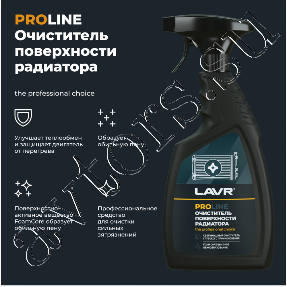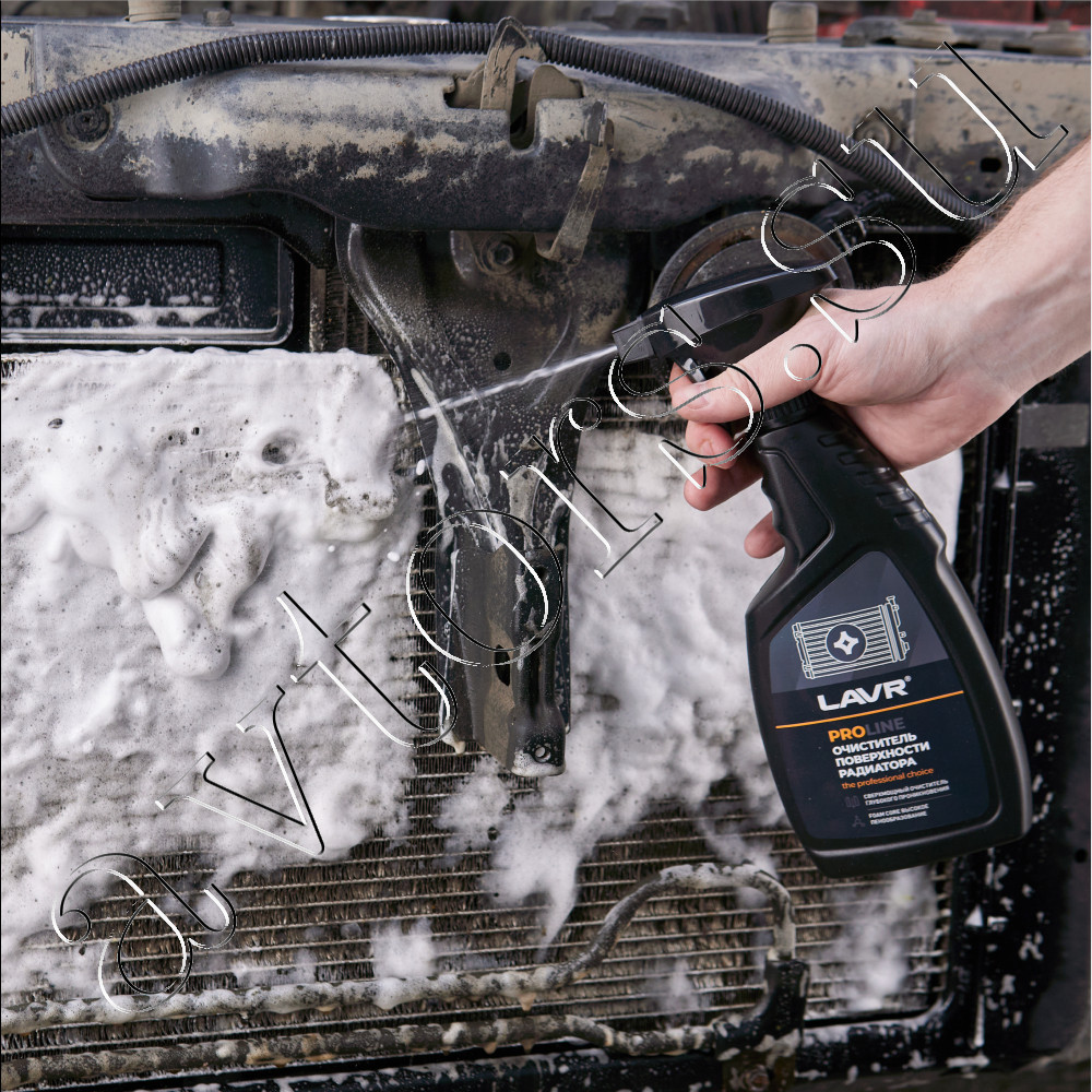 Профессиональное средство для очистки сильно загрязненных поверхностей радиатора системы охлаждения, кондиционера, интеркулера, системы смазки, КПП и других. Проникает в структуру загрязнений и образует обильную благодаря веществу FoamCore. За 5 минут расщепляет въевшуюся дорожную грязь, соль, потеки антифриза и следы насекомых.