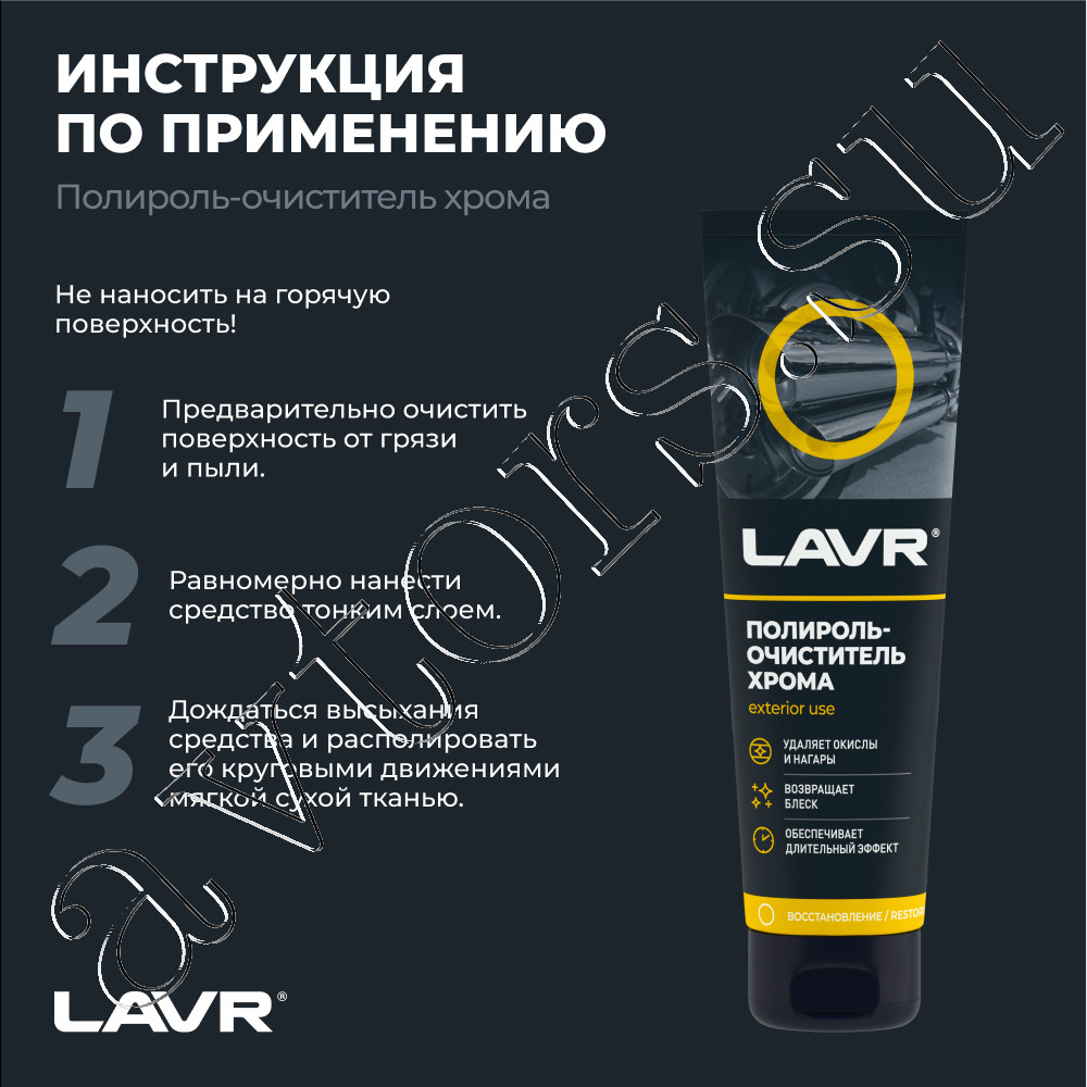 Эффективное средство ухода за хромированными, никелированными, алюминиевыми и другими металлическими поверхностями. Предназначено для обработки хромированных дуг, решеток, бамперов, колесных дисков и деталей кузова. Очищает от окислов, нагаров и следов ржавчины Возвращает первоначальную новизну и блеск, маскирует царапины и потертости Создает защитное покрытие от воздействия окружающей среды и дорожных реагентов Не оказывает агрессивного воздействия на металл Подходит для хромовых, алюминиевых и других нержавеющих деталей Используется в уходе за авто, мотоциклами и в быту