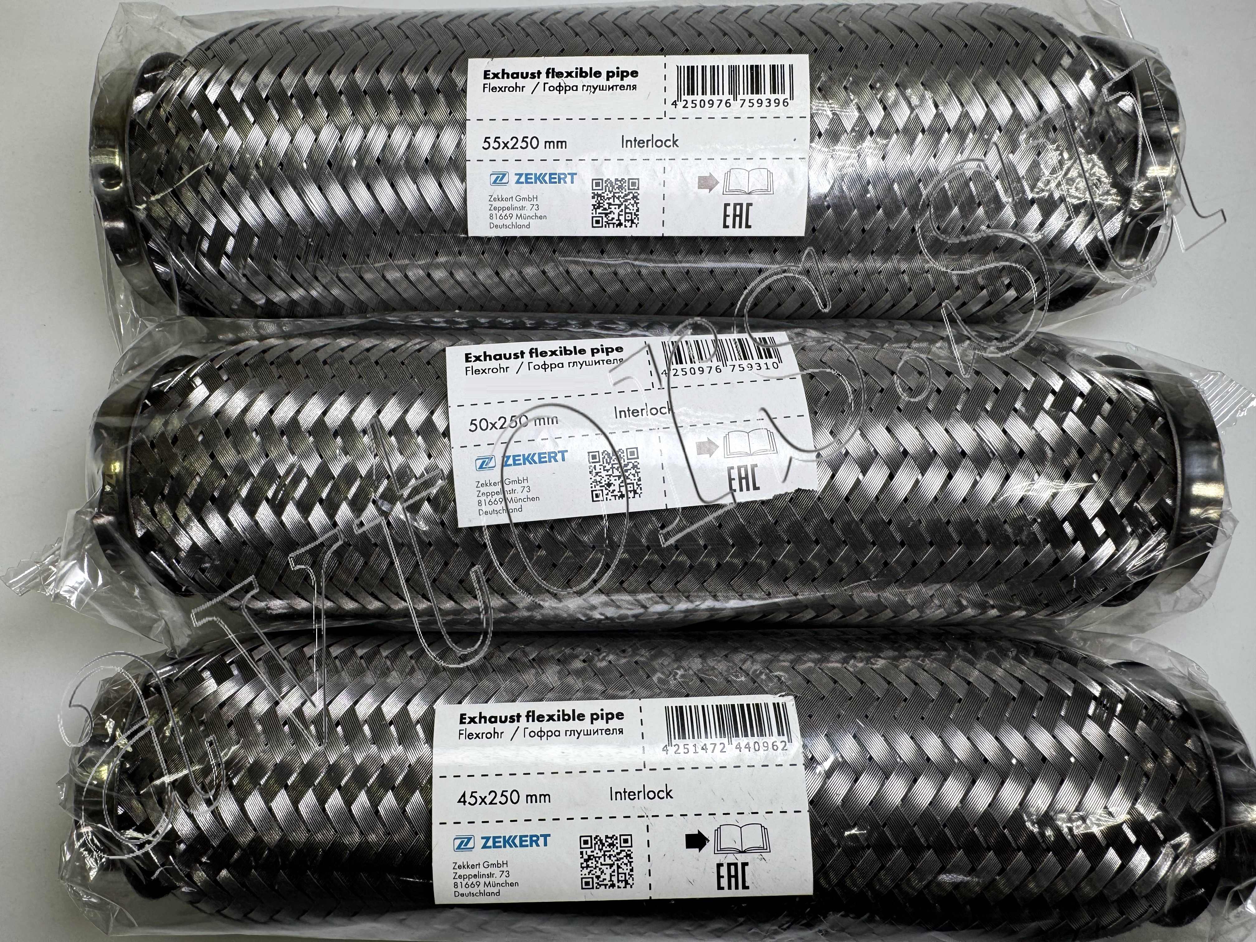 Гофра глушителя трехслойная с внутренним металлорукавом Zekkert Interlock Диаметр 45/50/55 мм. Длина 250 мм.